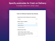 Specify postcodes eligible for Cash on Delivery to prevent reputational damage from canceling customers’ orders from inconvenient locations. You can make exceptions by specifying the list of particular postal codes you want to allow.