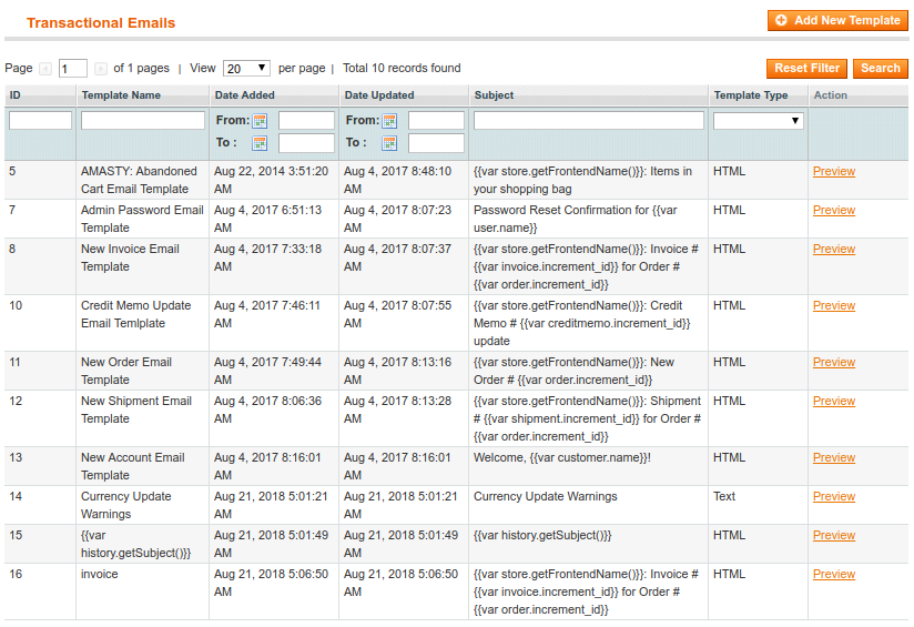Main Template - choose an email template. To edit or create a template, please, go to System > Transactional Emails.