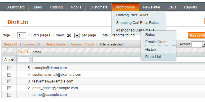Import Blacklist - import customer emails that you want to add to your blacklist.