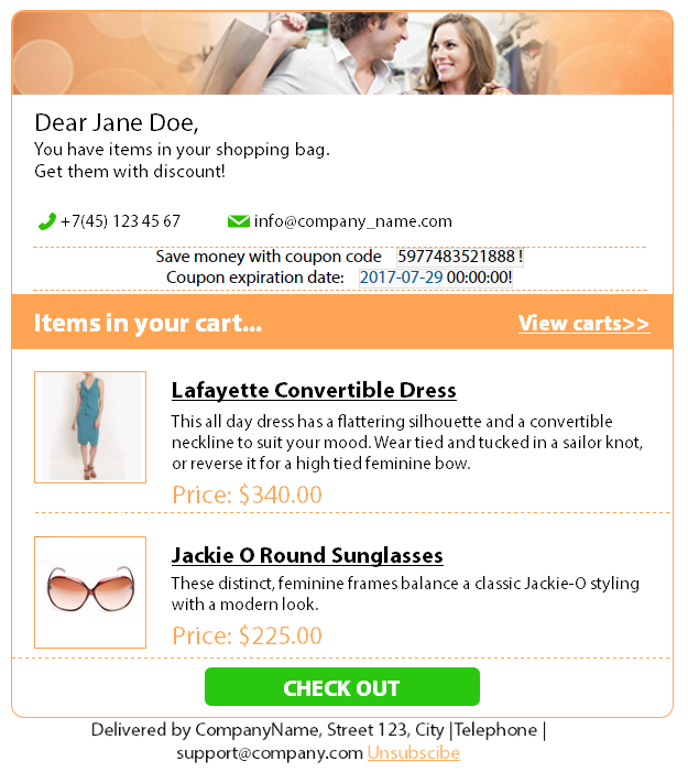 Increase your conversion rate by motivating customers to recover their abandoned carts. Send mass cart reminders, easily customize email templates and generate coupons to encourage visitors come back to your store.