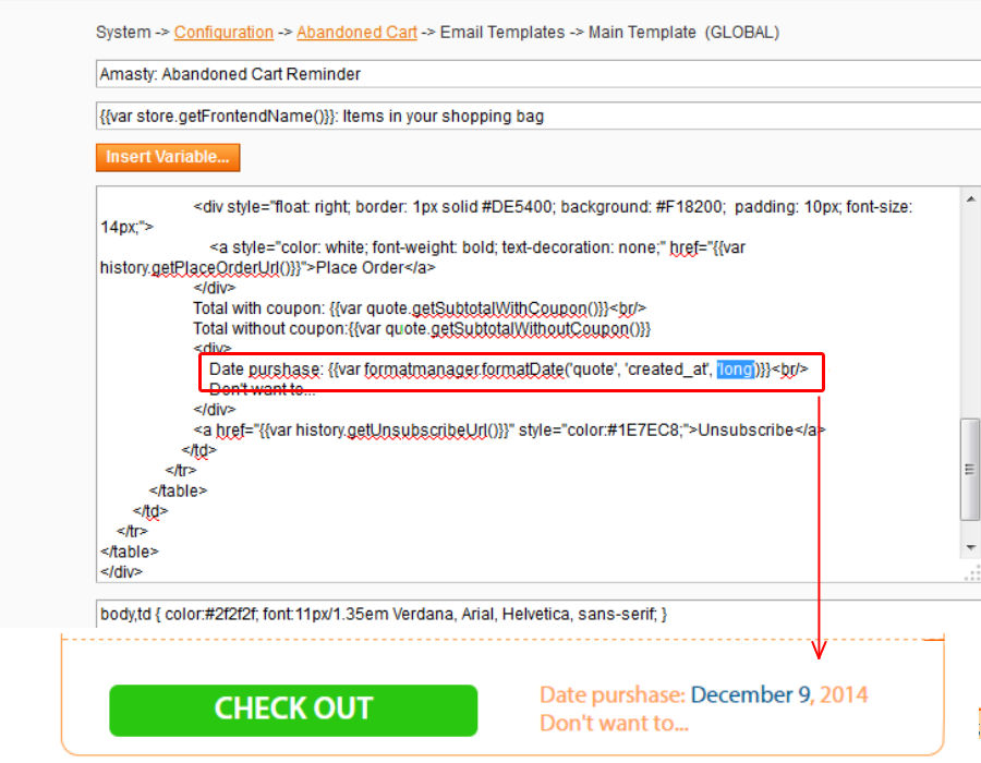 To use custom variables, go to Template Content field: