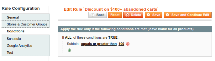Allow triggering more than one rule per Cart - Set to Yes if you want to apply more than one rule per Shopping Cart. This option will let you send not one but several types of messages according to the content of an abandoned cart. For example, you can trigger messages with a free delivery offer on orders over $100 — and simultaneously apply another rule to offer discounts for certain product type to motivate customers to spend more.