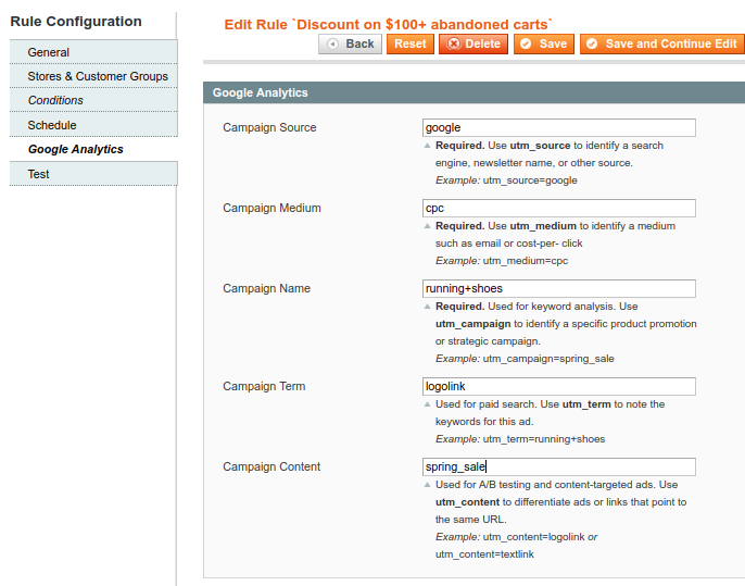 These settings allow you to get Google Analytics statistics in your email campaign.