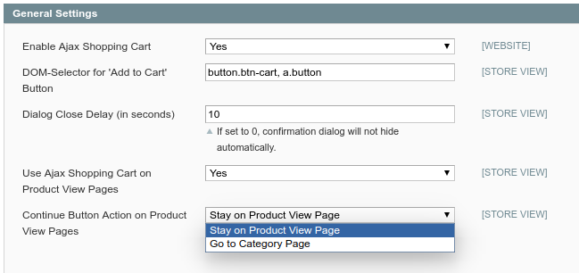 Use Ajax Shopping Cart on Product View Pages - You can choose whether to use AJAX cart on product view page.