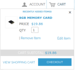 Display floating cart window - Enable the floating cart window on your store. It’s displayed when a customer hovers mouse over My Cart link in the header.