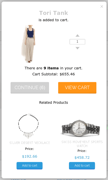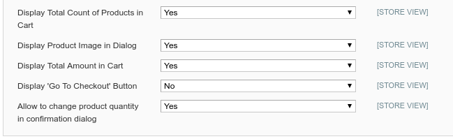 Display Related Products in Confirmation Dialog - To display related products in the cart dialog, set this option to Yes.