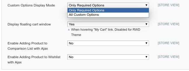 Custom Options Display Mode - Customers can select configurable products and custom options right on the category page. If you use many custom options and would like to display only required ones on category pages, please choose Only Required Options.