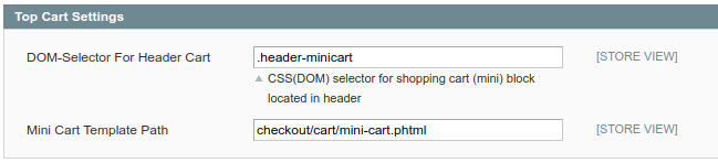 Mini Cart Template Path - Specify header cart template path to adjust it to your store template.