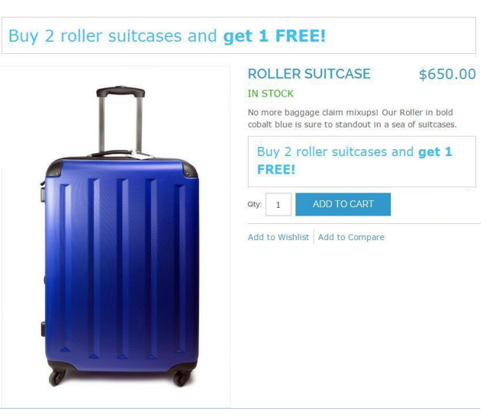 Display additional promo text on top of the product page together with the banner or instead of it. Also, you can display additional promo text above ‘Add to cart’ button.