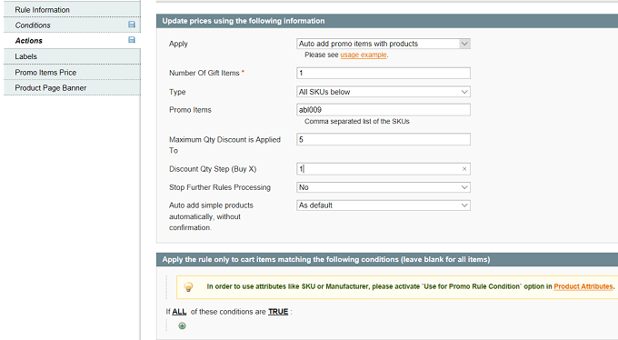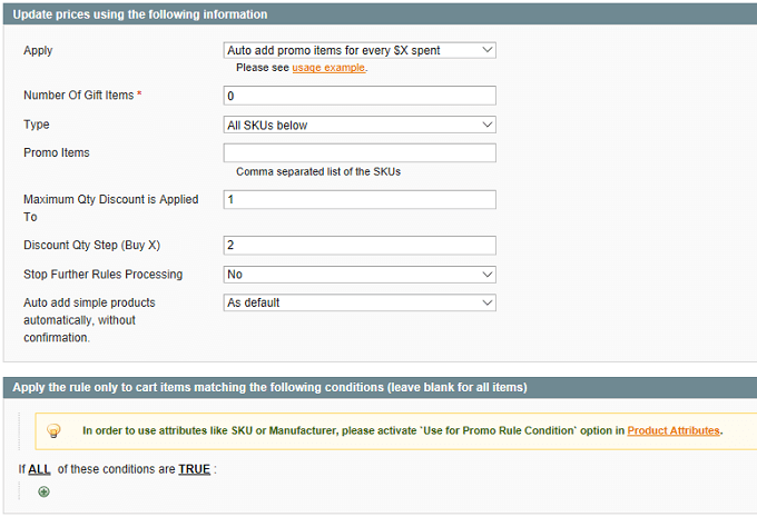 Number Of Gift Items - specify how many gift items a customer will get if the cart will meet the conditions in the rule.
