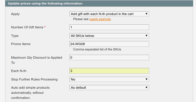Apply to Admin orders - Set to ‘yes’ if you want to apply free gift rules to the orders, created by store admins.