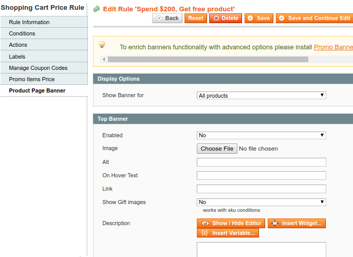 Enable Top Banners - Set to ‘Yes’ to display the promo banner on top of the product page.