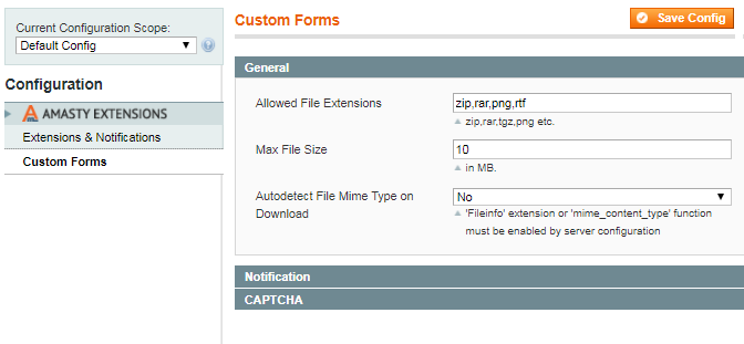 Allowed File Extension - Specify available formats for files that should be uploaded.