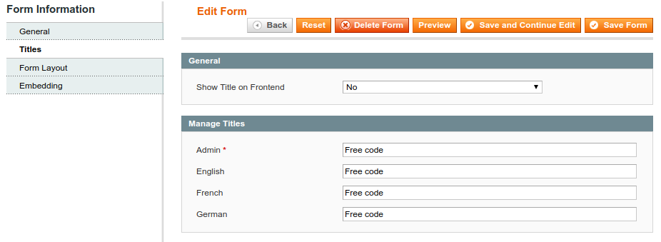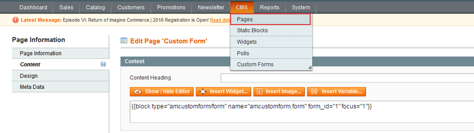 To add your newly created form to your site, go to Admin Panel → CMS → Pages. Paste the code of a custom form in Content field .