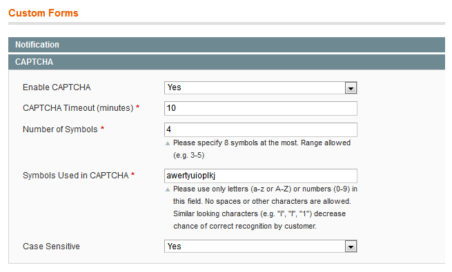 Case Sensitive - Set to Yes, to make CAPTCHA Case sensitive.