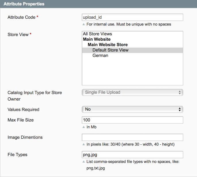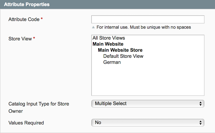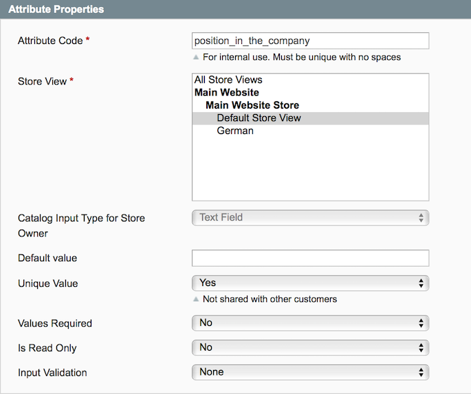 Catalog Input Type for Store Owner — choose the input type and configure it settings. See extra settings for various attribute types below;