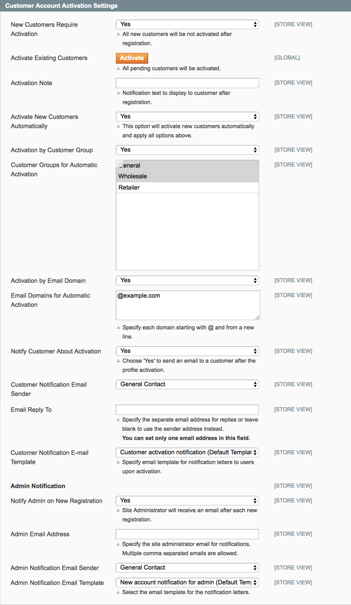 Activation by Customer Group — enable this option to automatically activate customers that are assigned to particular groups;