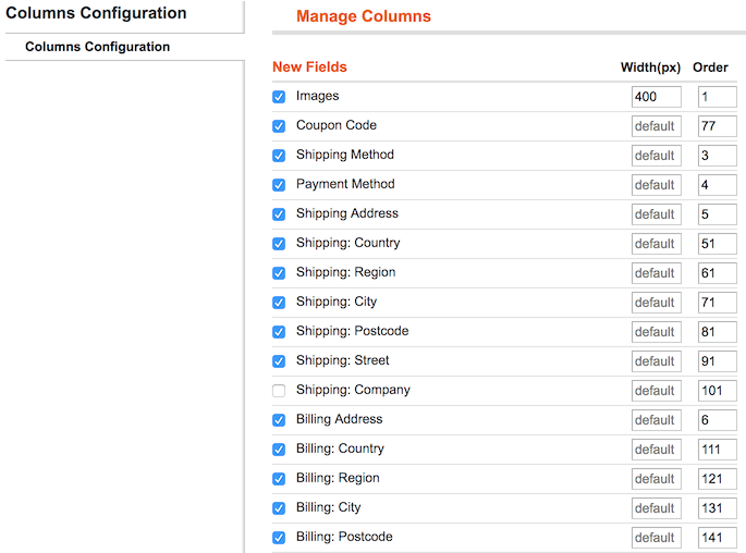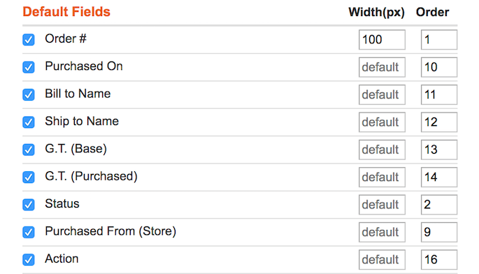Then, tick the fields you want to add to the order grid. In the Order column, you can adjust their position on the grid.