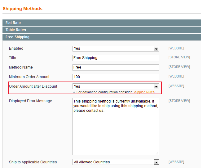 Order Amount After Discount - set this option to 'Yes' to disable a free shipping method after a discount.