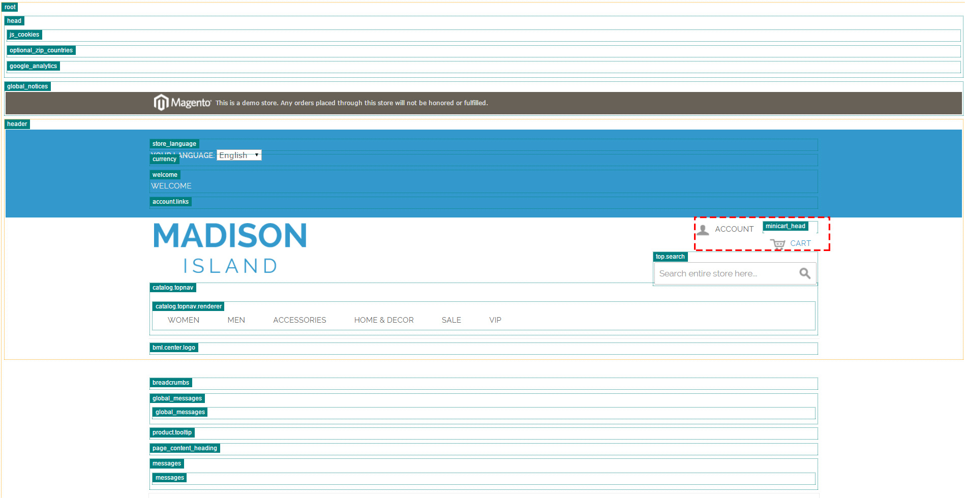 1. System → Configuration → Full Page Cache → Developer Settings → Display All Block Names → Set to Yes