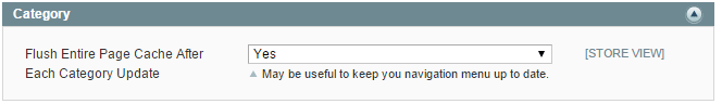 Flush Entire Page Cache After Each Category Update - if the option is set to 'Yes' the cache will be flushed each time when a category is edited and saved at: Catalog → Category Management → Save Category