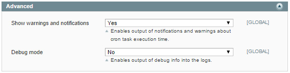 Show warnings and notifications - Enables output of notifications and warnings about cron task execution time.