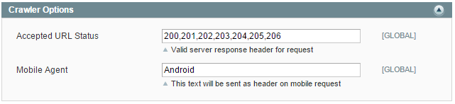 Accepted URL Status - the list of page statuses which will be accepted by the crawler. You may check the page status following way: