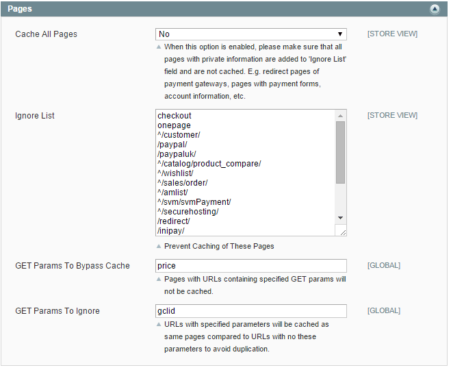 GET Params To Ignore - Pages containing specified parameters in URLs will be cached like the same pages without these parameters in their URLs. This will help to avoid content duplication.