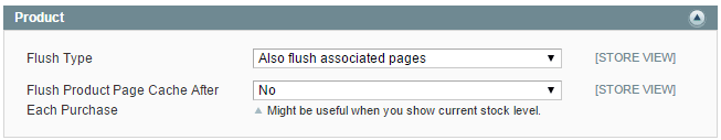 Also Flush associated pages - the cache of a specific product and all associated category pages will be flushed. For example the product is assigned to: Category → Subcategory - after some changes in admin area both 'Category' and 'Subcategory' cache will be flushed.