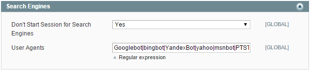Don't Start Session for Search Engines - don't start the session for agents listed below however the agents still see the results.