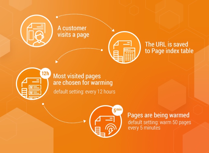 Every 12 hours the process of adding pages to the Crawler queue is started. When the queue is generated, every 5 minutes the page warming process is initiated according to the predefined queue.