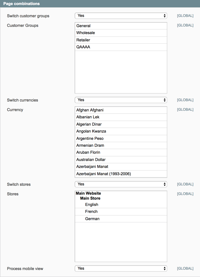 Queue processing is done link by link and, after all parameter combinations are done, the link is deleted from the queue. All requests are performed using CURL PHP library. If you don’t have it installed on your server, you’ll have a warning message in the extension settings. The queue has five nested loops for passing through enumeration of all possible parameter combinations: Customer Group, Store, Currency, Language, Mobile.