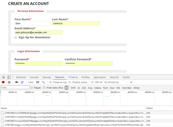 1. Go to 'Create an account' page and open the 'Inspect' window.