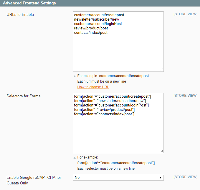 Enable Google reCAPTCHA for Guests Only — select YES to enable reCaptcha for guest visitors only.