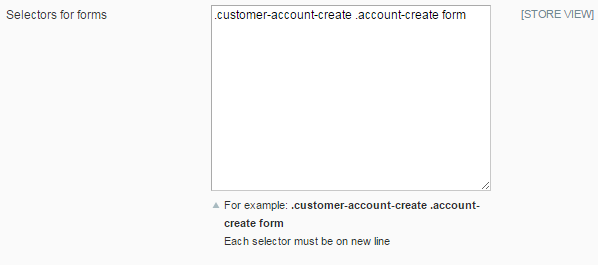 3. In our case the selector is .customer-account-create .account-create form and we added it to the Selector for forms field.