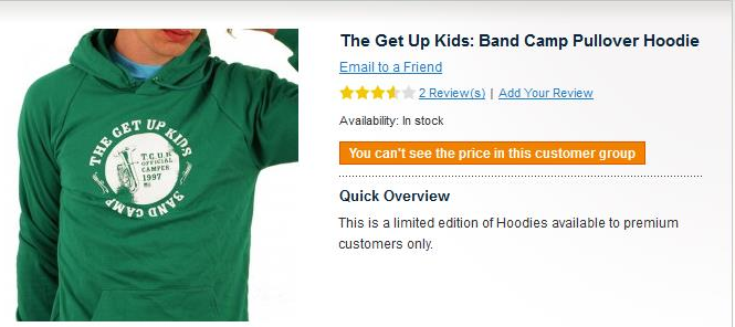 You can show product price and other options to a limited group of customers only, thus you can organize private sales in your store.