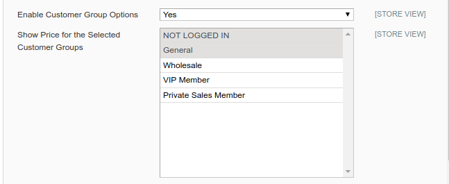 Enable Customer Group Options - Select customer groups to which the price will be available. To hide price from all customers set the option to No.