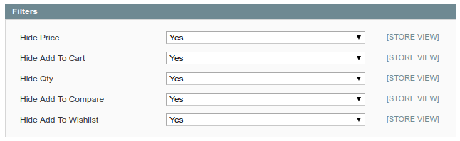 The extension allows to control the prices' display (hide/show) for particular products or for individual categories and customize “Add to cart” buttons for guests or certain customer groups.