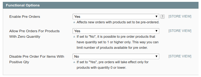 Disable Pre Order for Items with Positive Qty - Set this option to Yes to enable pre orders only for products with Zero or lower quantity.