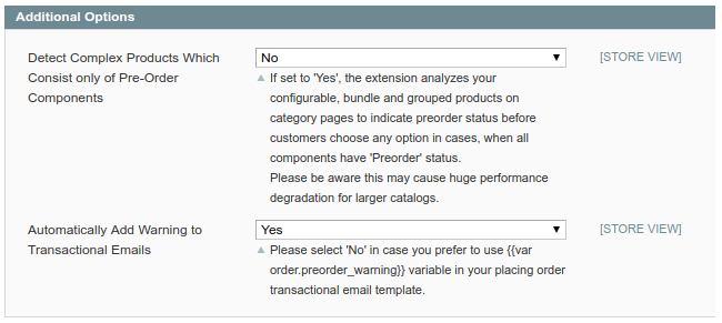 Automatically Add Warning to Transactional Emails - If the option is set to Yes, the pre order warning message will be automatically added to the transactional email template. If the option is set to No, you can place the variable manually anywhere in the email template.