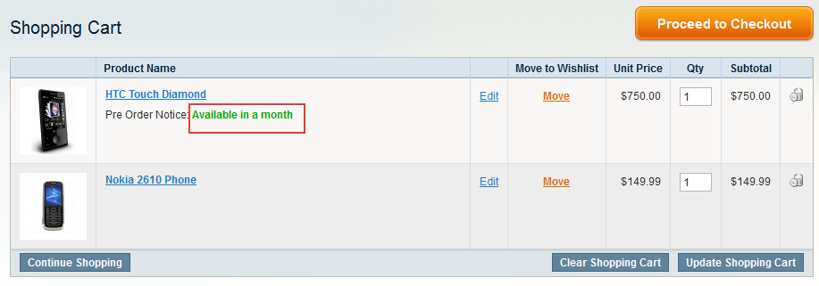 Add to Cart Button Text - Specify the text that will be displayed instead of the Add to Cart button on the category and product pages for all pre order products.