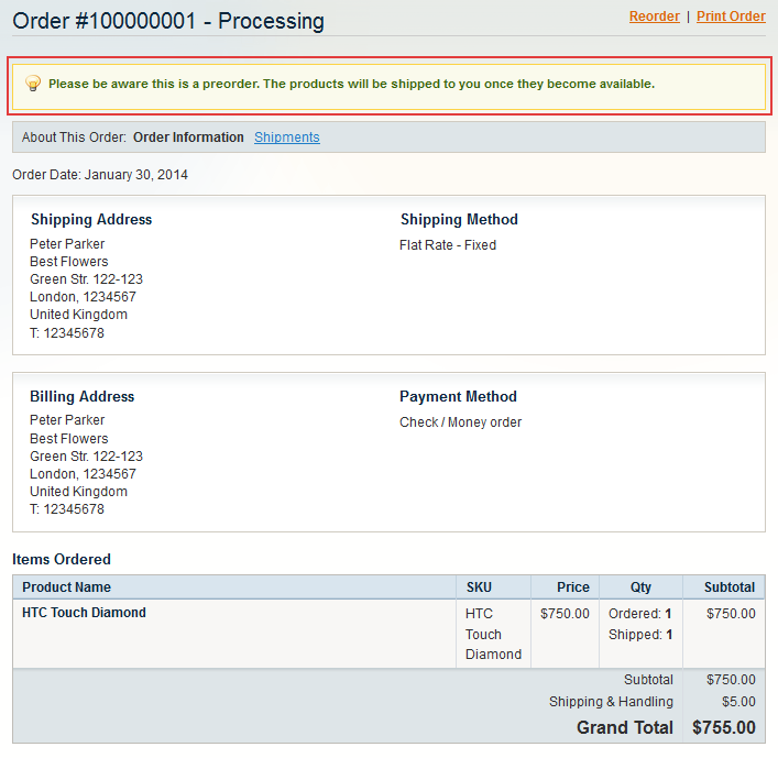Pre Order Note - Customize Pre Order note for each particular product instead of the default one.