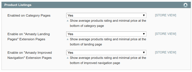 Category Page - This feature lets you display the average product rating and minimal price in search results as well as at the bottom of each category page on your site.