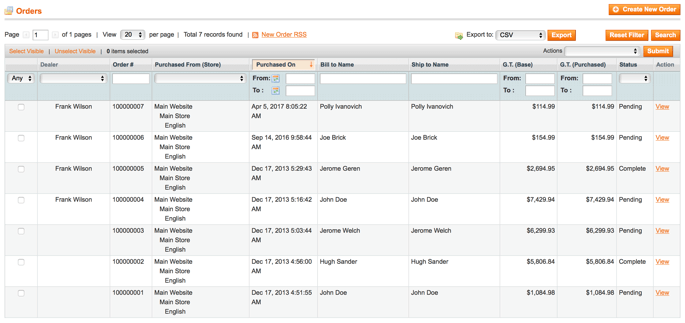 The Dealer column is added to the order grid, so the main admin can see which orders are assigned to what dealers, filter and sort orders by dealers.