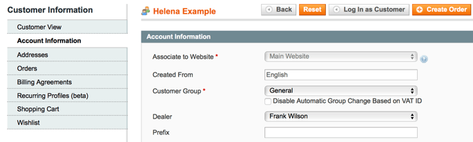 Hence, when being logged in as a dealer and tried to create the order for any customer assigned to you, you‘ll be able to specify only the customer group set by the store administrator.