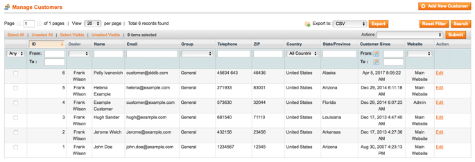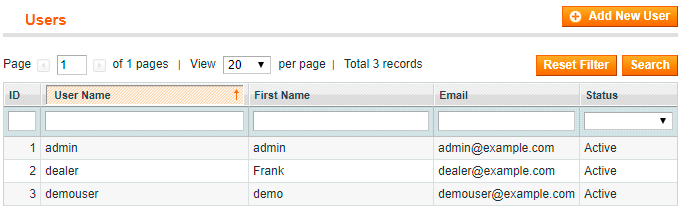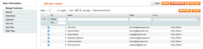 When logged in as a dealer, all customers created by the user from the admin panel are automatically assigned to this user. Also, it is possible to filter ‘Not Assigned’ dealers on customer and order grids.