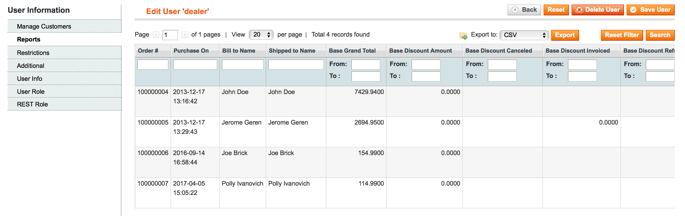 Benefit from a wide network of sales reps and dealers. Assign customer groups to a particular sales reps and dealers to let them manage only their part of your store audience. On top of that, the extension provides you with a convenient set of tools to control sales reps and dealers.