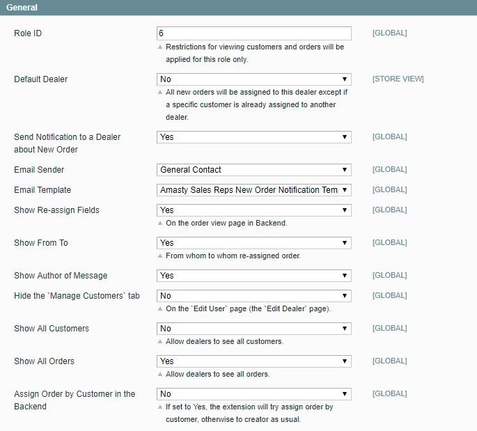 Dealer Can Assign Order to Other Dealers — set to Yes to let dealers assign orders to the other dealers or No to assign orders to the store administrator only;