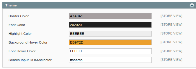 Also you can choose colors used for design elements of the autocomplete window, such as: