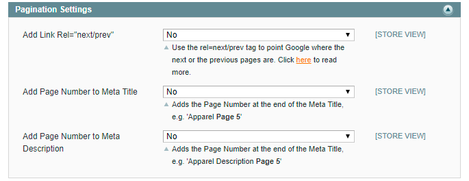 Add Link Rel=“next/prev” - To improve indexing, links that are components to the series will be grouped. Users will receive the most relevant URL's (the first page of the series: e.g. example.com/extensions.html instead of example.com/extensions.html?p=1).